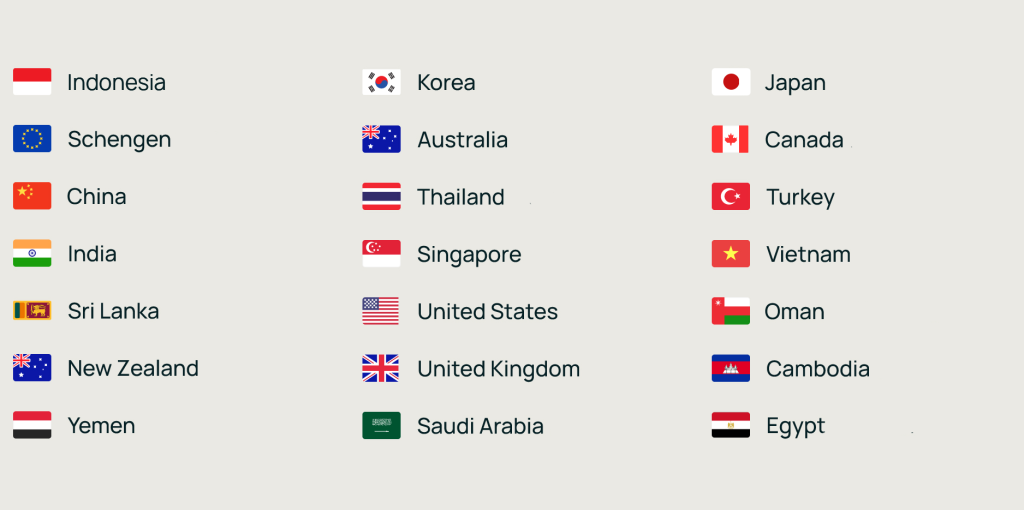 Global Gateway dapat mengurus berbagai jenis visa di bawah ini dan siap disesuaikan dengan tujuan Anda :